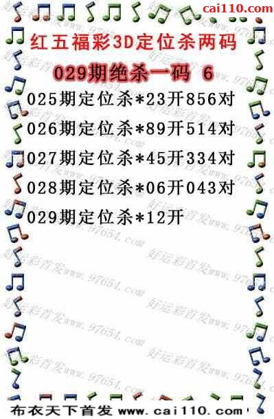 福彩3D23年029期红五图库定位杀码(原