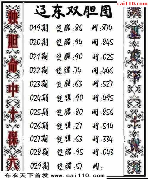 3d23年029期辽东今日双胆图