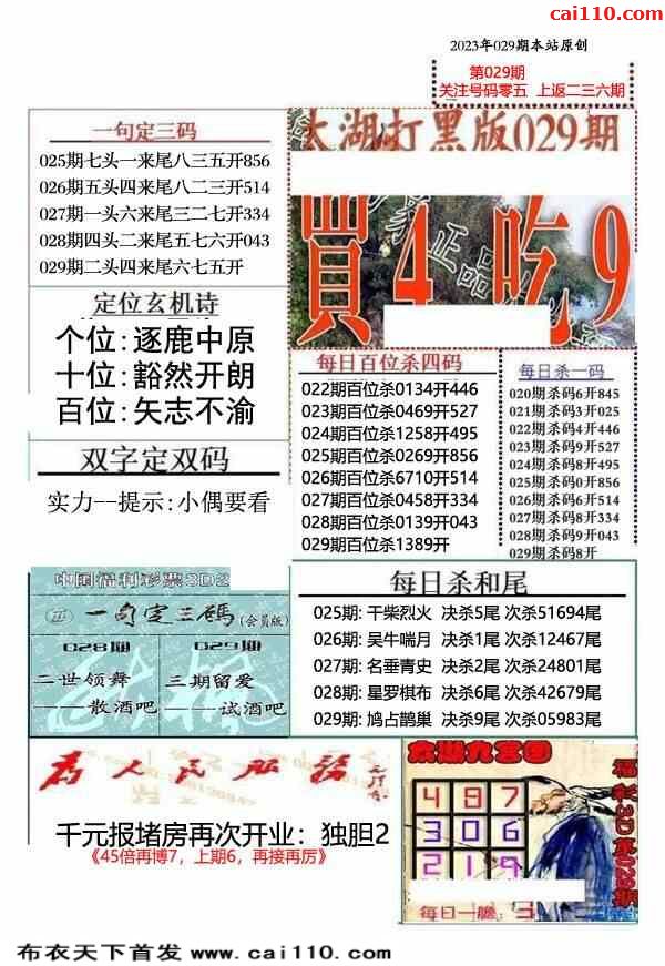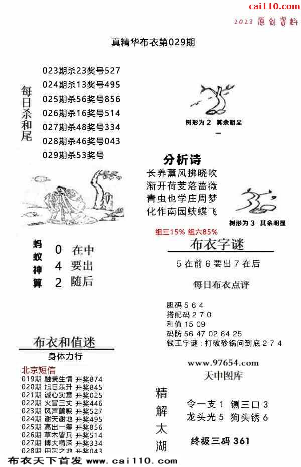23年029期牛彩布衣精选推荐