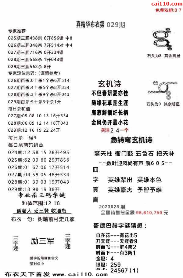 23029期真精布衣3d正版布衣123456(原