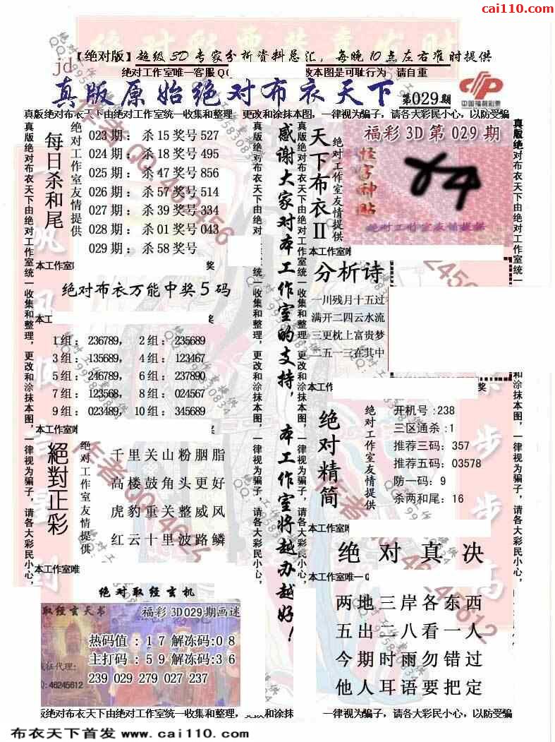 23年029期当期正版3D藏机图(每日更新