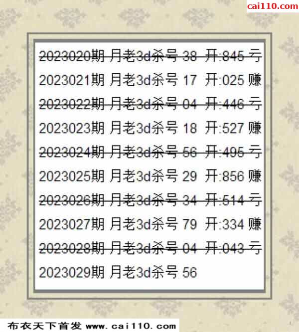 23029期3d新布衣皇帝早间四版