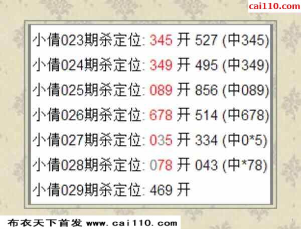 小倩23年029期福彩杀定位