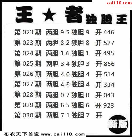 030期布衣独胆王胆码预测