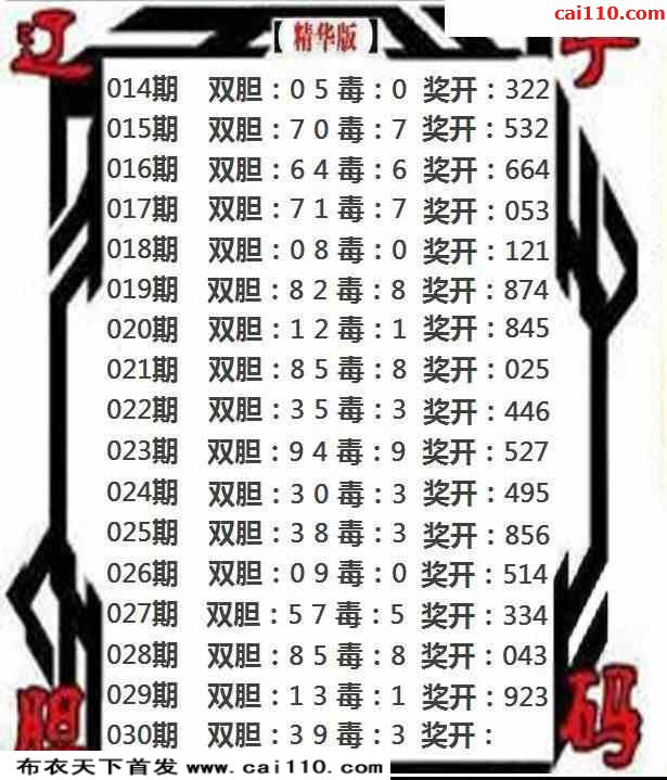 23030期辽宁胆码精华版