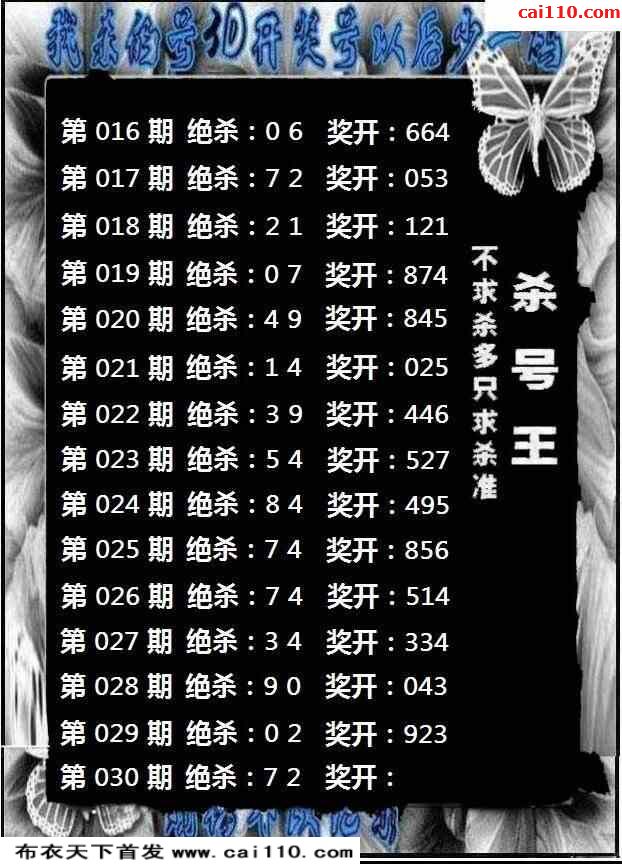 23年030期杀号王推荐两码3d图迷