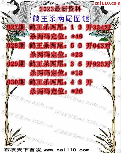 鹤王23-030期福彩3d杀尾图谜(原创)