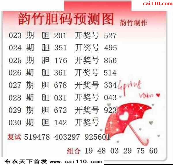 韵竹胆码图23030期复式推荐