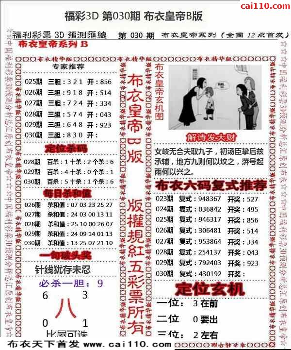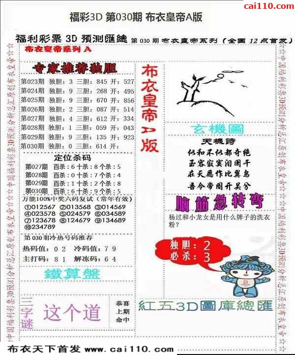 鹤王23-030期福彩3d杀尾图谜(原创)