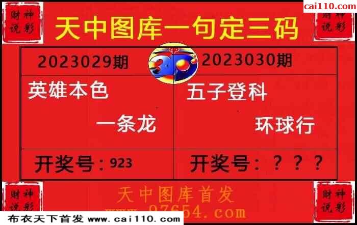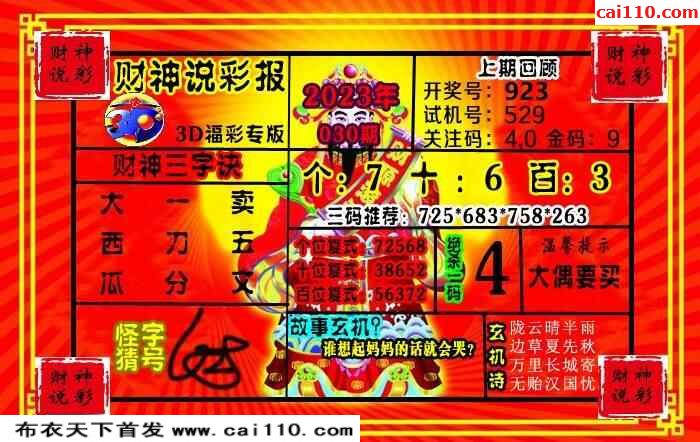 23年030期财神说彩3D综合图(原创)