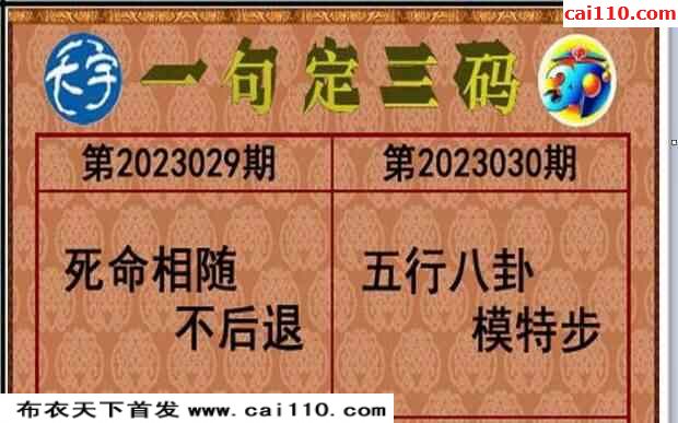 福彩23030期3d真精华布衣+布衣早报(