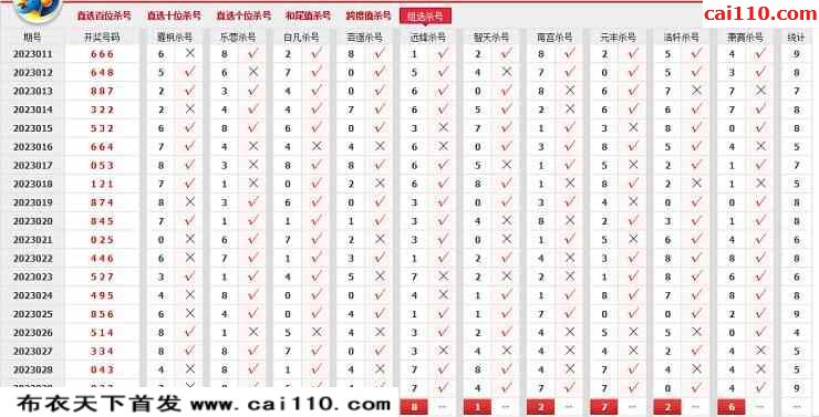 2023年030期奥客网组选杀号福彩图表