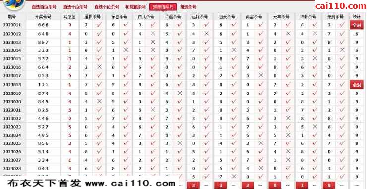 2023030期360网站杀号定胆图表