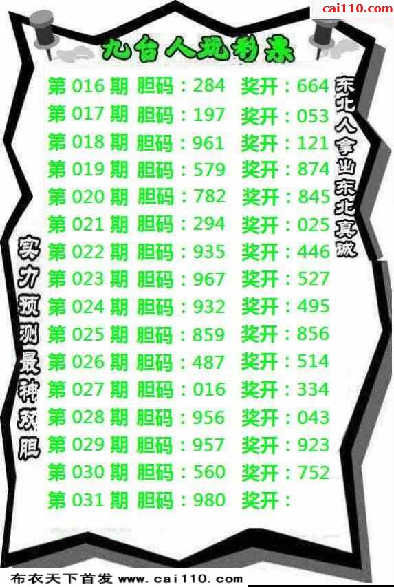23031期九台人玩彩票实力预测