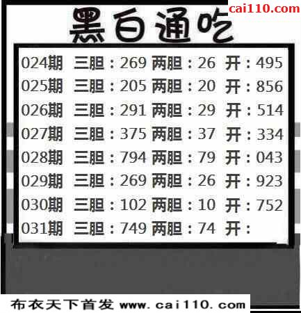 23031期黑白通吃三胆图谜