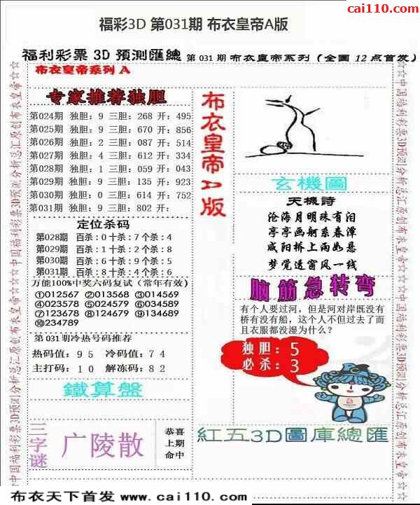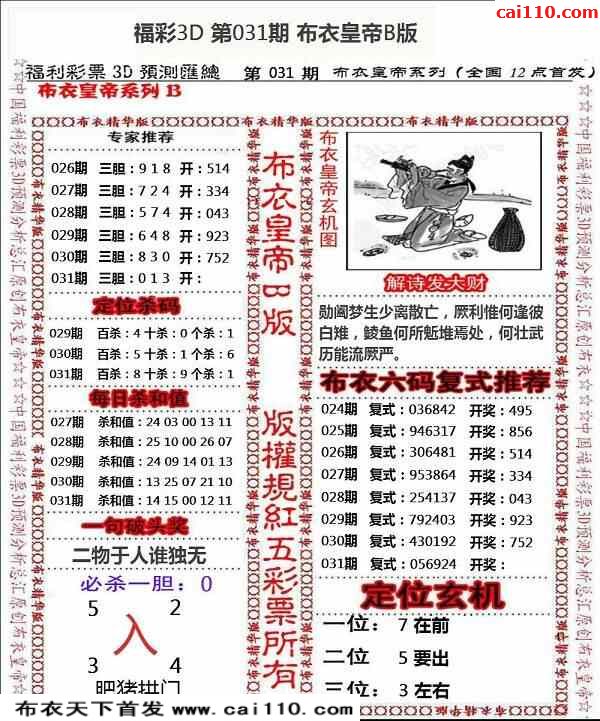 031期布衣独胆王胆码预测