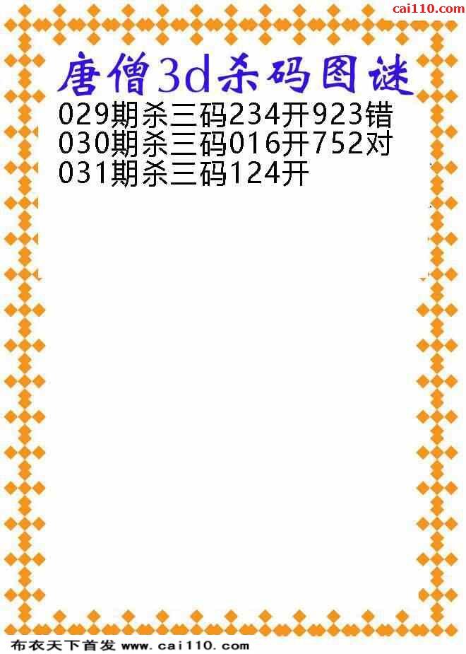 031期唐僧杀三码3d布衣天下(原创)