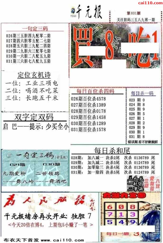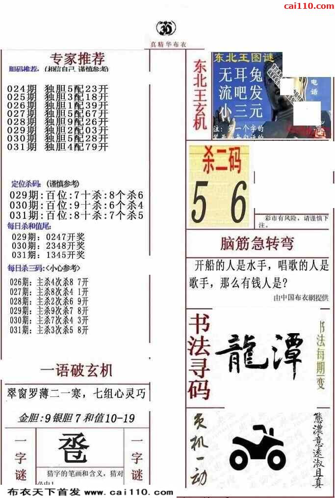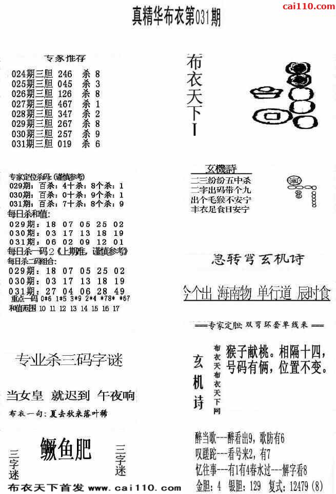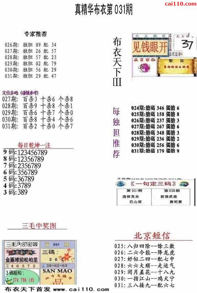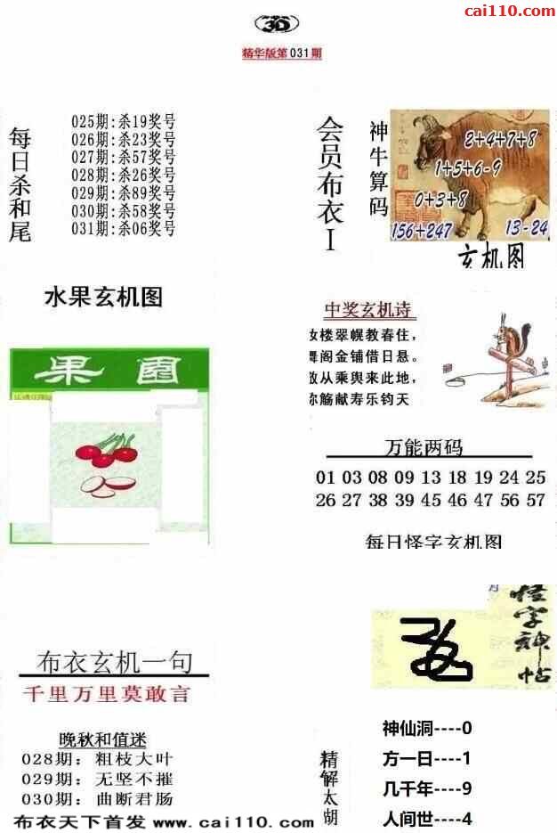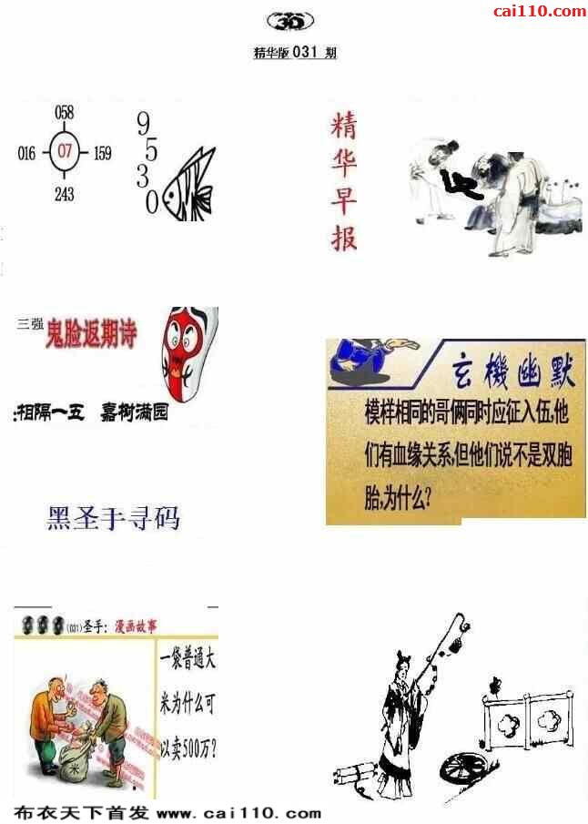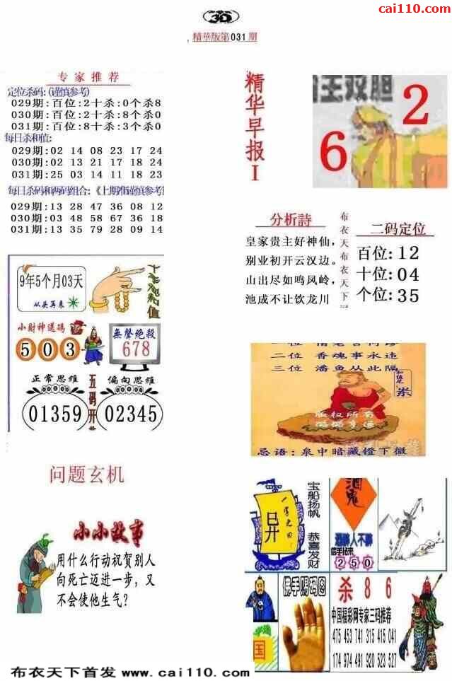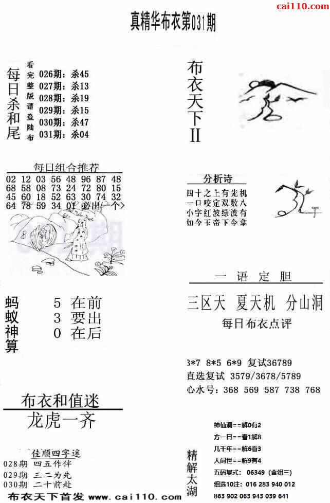 福彩23031期3d真精华布衣+布衣早报(