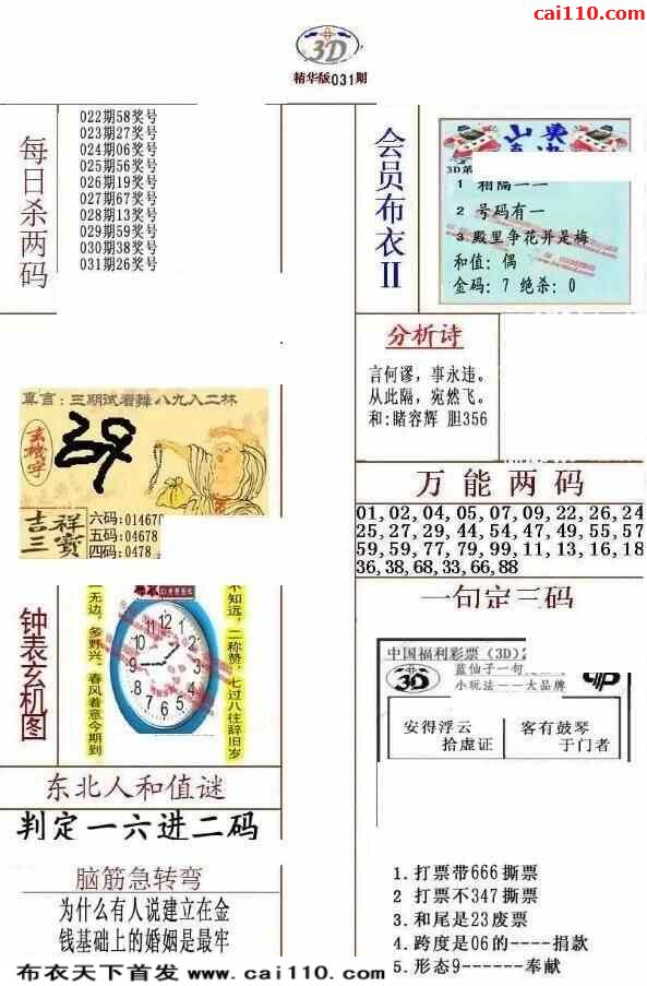 福彩23031期3d真精华布衣+布衣早报(转载)