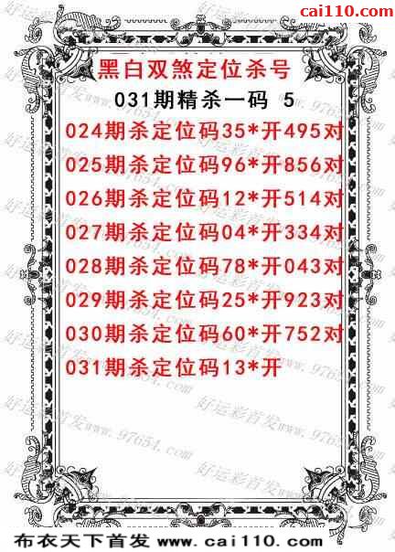 福彩3d黑白双煞23年031期杀码推荐(原