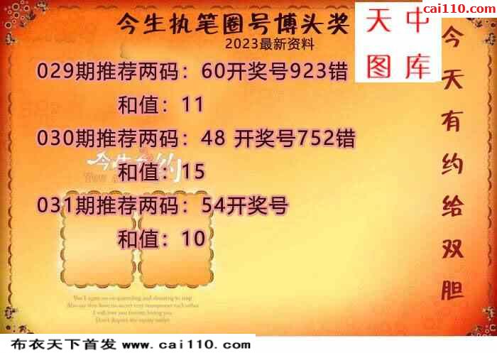 23年031期牛彩布衣精选推荐