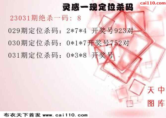 福彩3D23年031期红五图库定位杀码(原