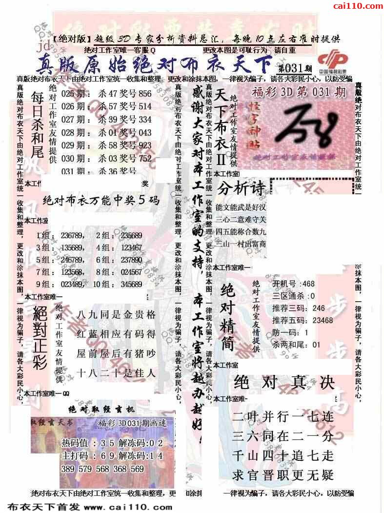 23031期真精布衣3d正版布衣123456(原