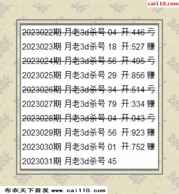23031期布衣天下百灵鸟预测3D图迷(原