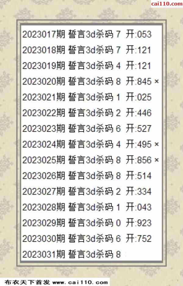 2023031期誓言必中杀码预测