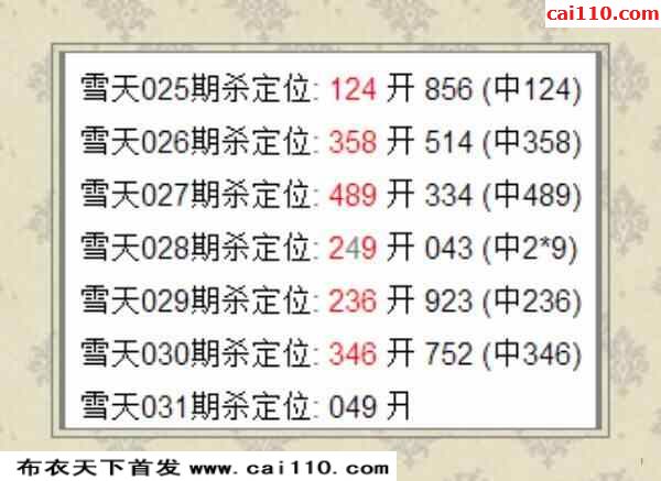 雪山3D031期定位杀码预测