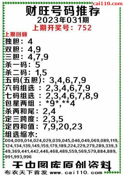豪华预测本期杀码031期
