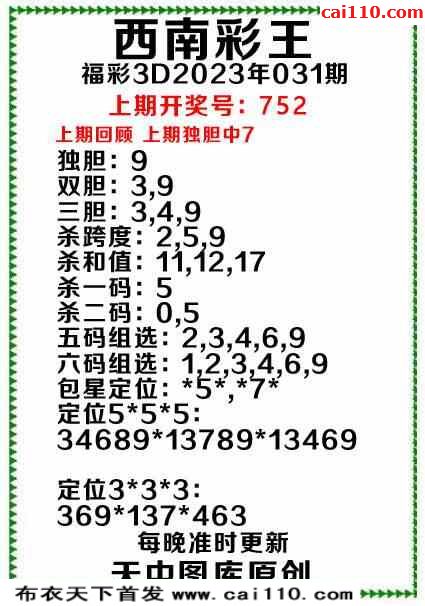 小倩23年031期福彩杀定位