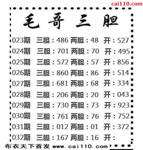 23年032期毛哥三胆3d图谜