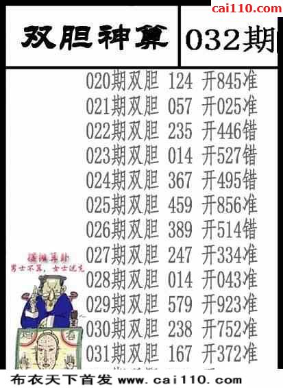 032期布衣独胆王胆码预测