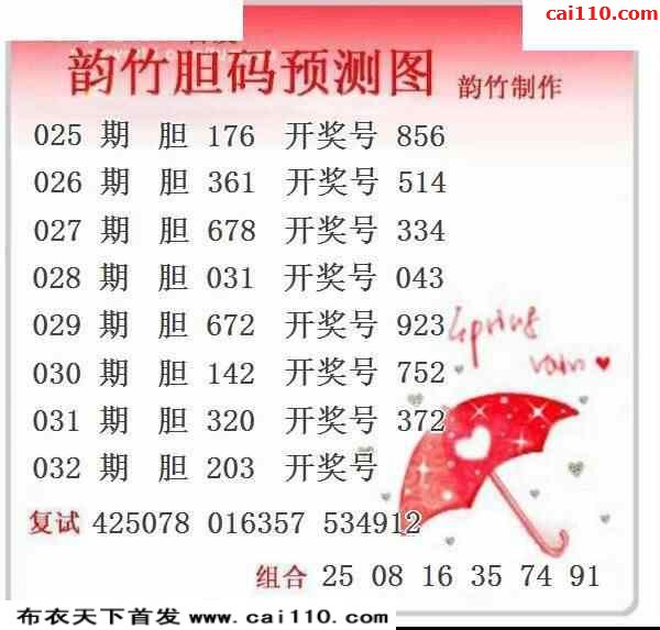 韵竹胆码图23032期复式推荐