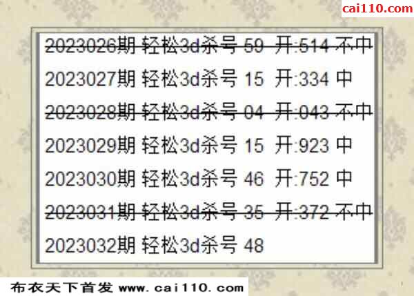 23032期布衣天下百灵鸟预测3D图迷(原