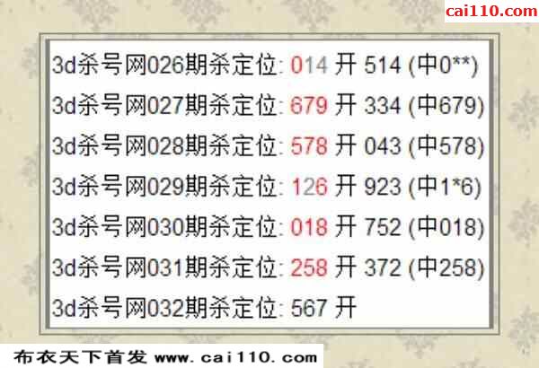 老彩民3D定位杀码23032期