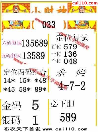 23年033期3d天彩财神五码复试图