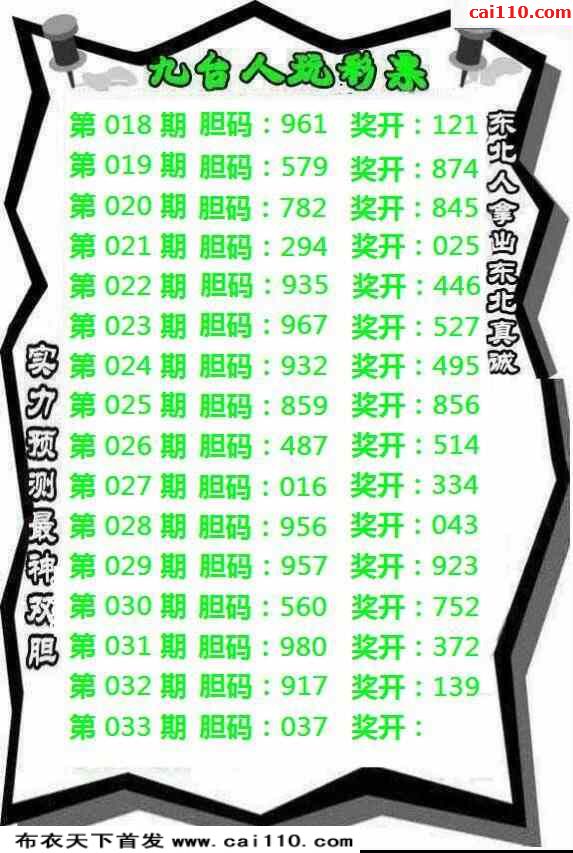 23033期九台人玩彩票实力预测