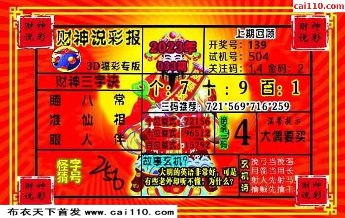 23年033期财神说彩3D综合图(原创)