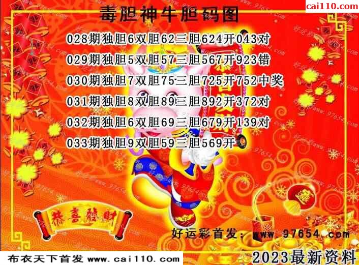 23033期毒胆神牛推荐胆码图(原创) 连对中