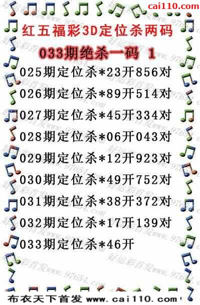 福彩3D23年033期红五图库定位杀码(原