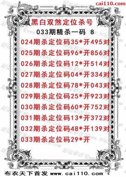 天齐网保真版杀号图23033期 连对中