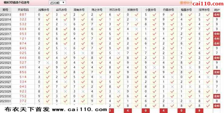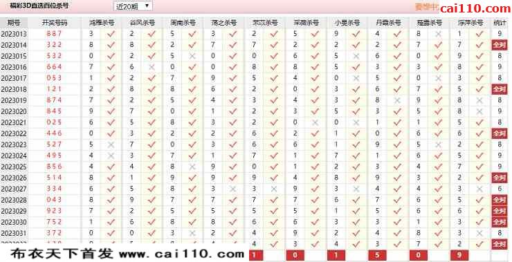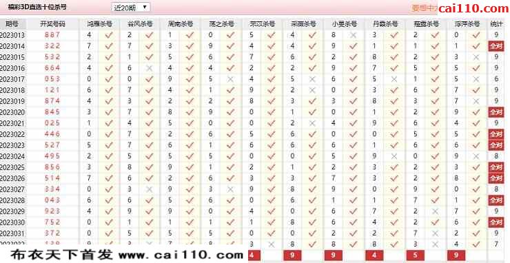 2023年033期彩经网组选杀号3d图表