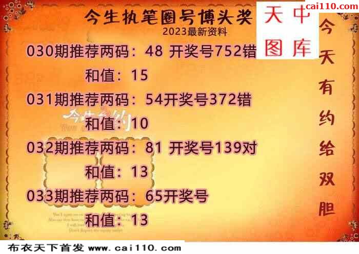 2023年033期今天发哥双胆图 连对中