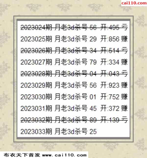 光荣榜杀码3D2023033期