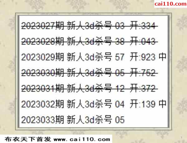 光荣榜杀码3D2023033期