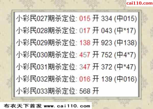 033期小彩民预测今晚杀号定位