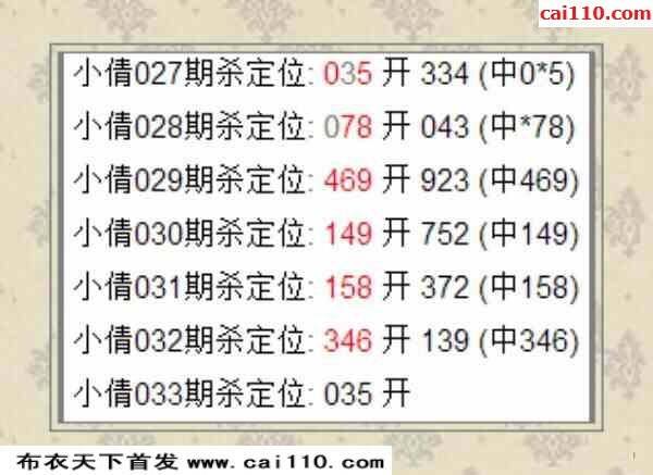 小倩23年033期福彩杀定位