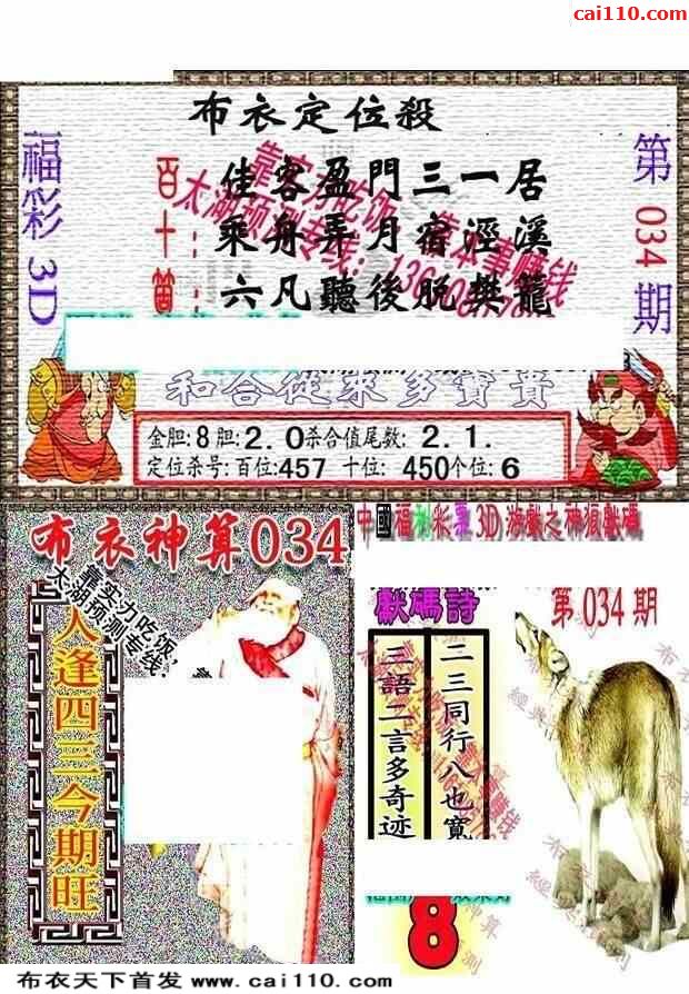 034期新禧布衣定位杀个十百位